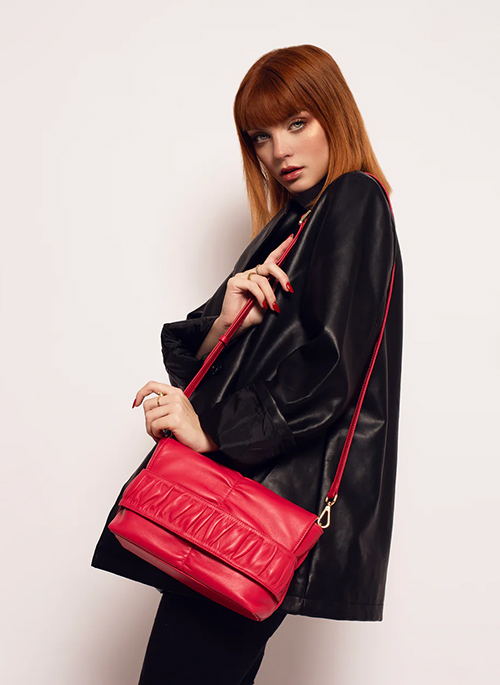 A timeless classic,the Fuschia Apolline Ruched Shoulder Bag is a versatile accessory that will never go out of style. Its sleek design and elegant color make it perfect for any occasion.Made from sustainably sourced nappa leather, this bag is a must-have for any wardrobe. The Apolline includes two removable straps, a luxurious leather shoulder strap and a stylish metal gourmet chain shoulder strap, offering versatile and customizable carrying options.Details:
