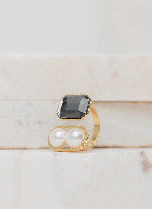 This ring completes our ‘Aurore’ family. This ring is filled with personality and immersed in the world of elegance. With its special shape gold plated brass, enriched with handmade glass stones from Czech Republic, this design encourages to embrace your authenticity. Each adaptable to precisely fit the size of your finger.