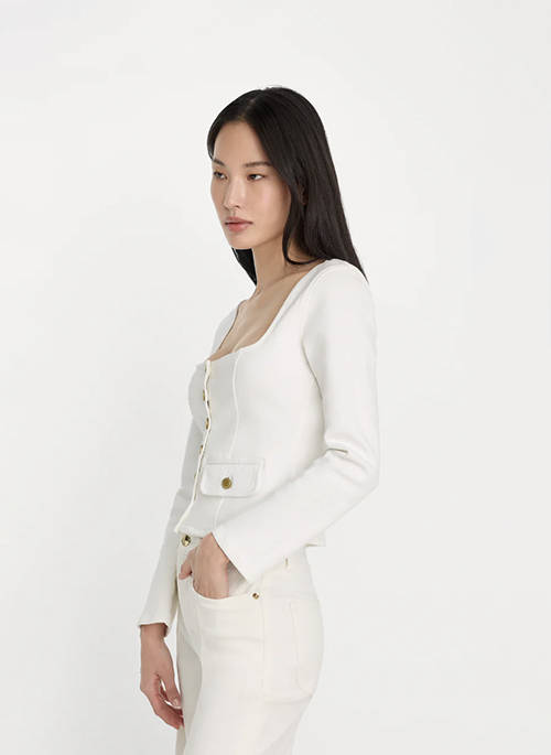 The button-front denim top. A structured, sleeveless tank with buttons down the front and a clean, wearable silhouette. Made from our comfort stretch denim for extra movement.Details: Square necklineButton details Comfort stretch denimWhite wash