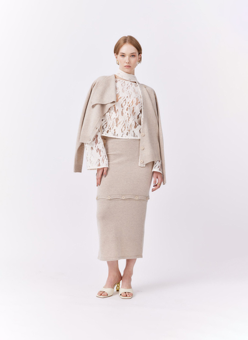 Helori Knit Cardigan is the classic-with-a-twist piece you need in your wardrobe. Knitted in a cosy, fine RWS merino wool, the front drape was added to the classic silhouette for extra warmth. Unique slanted centre front details with natural shell buttons to close, wear it open for an asymmetrical, exposed neckline. You can also wear it alone as a top or wear it over a shirt or any tops.