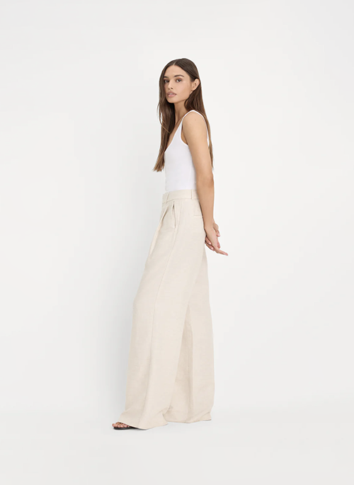The wide-leg linen trousers of your dreams. A form-hugging fit with wide legs, a floor-skimming silhouette and a flattering high-rise waist for a defined hourglass shape. Made with a lightweight, breezy linen-blend fabric.Details: