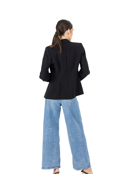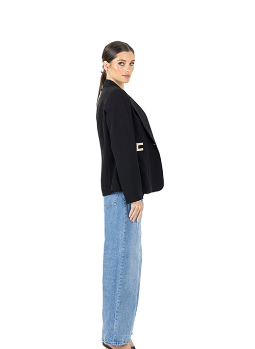 Elevate your wardrobe with the Richie Women Blazer in classic black. This long-sleeved, single-breasted jacket boasts a front closure adorned with luxurious golden buttons, adding a touch of sophistication to any outfit. A must-have for the refined and stylish woman.Details: