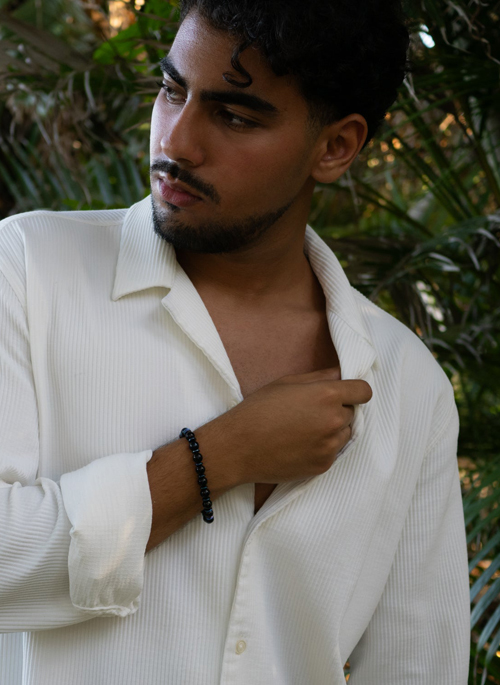 The Spiritual Black Onyx Beaded Bracelet, a captivating handmade accessory that combines the timeless beauty ofblack onyx with the grounding energy of hematite. The 8mm black onyx stone beads are carefully chosen for their deep, rich black color and smooth texture. Black onyxis known for its protective and grounding properties, providing a sense of stability and strength during times of spiritual growth. Each bead exudes a sense of elegance and sophistication, making this unique bracelet a versatile piece that can be worn for both casual and formal occasions.