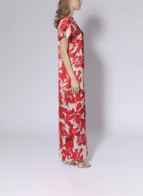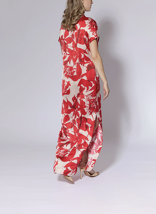 Details: Luxurious Italian viscose sateen Extended shoulder sleeve Self belt / sash is included13 inch slits at side seam55 inches at center backFabric imported from Spain100 ViscoseDry Clean Only