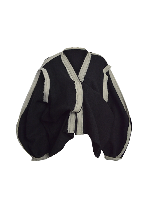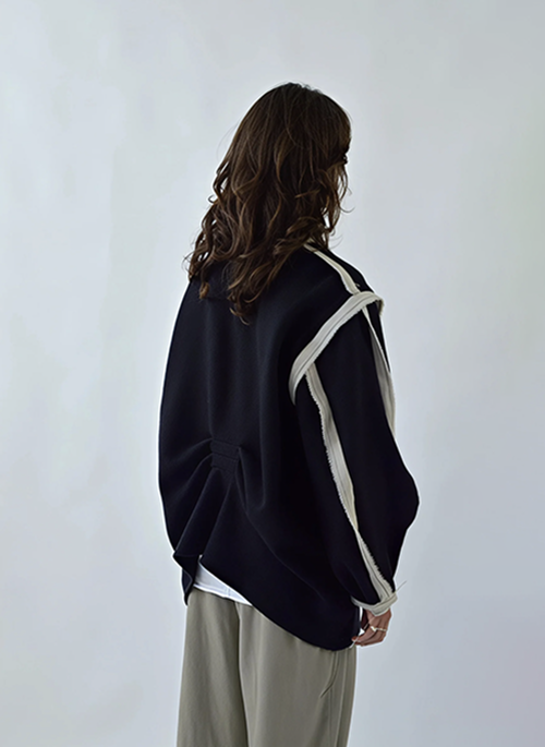 - Oversized black boiled wool vest