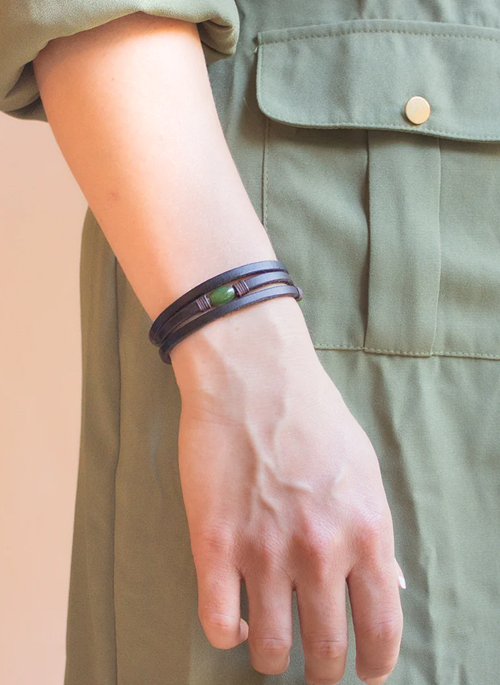 Jade (Nephrite) and Dark Havana English Bridle Leather