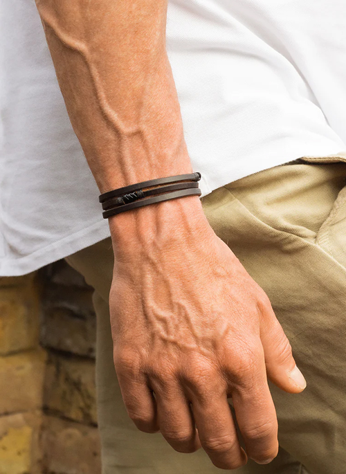 Vintage Black Snake Vertebrae Beads & Dark Havana English Bridle Leather