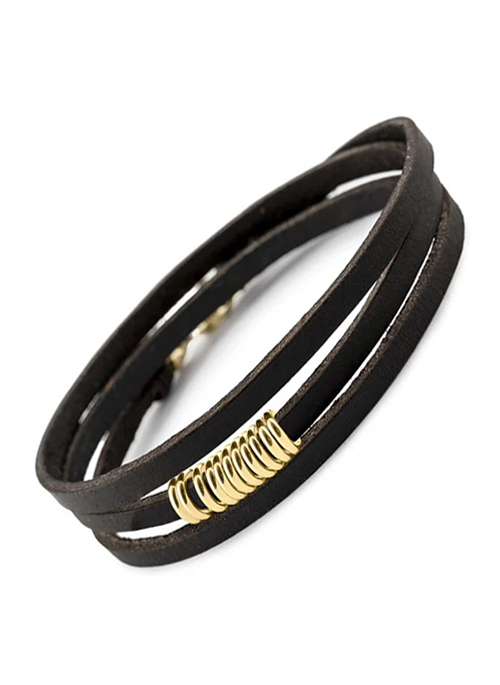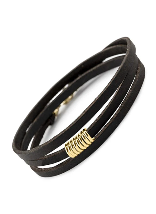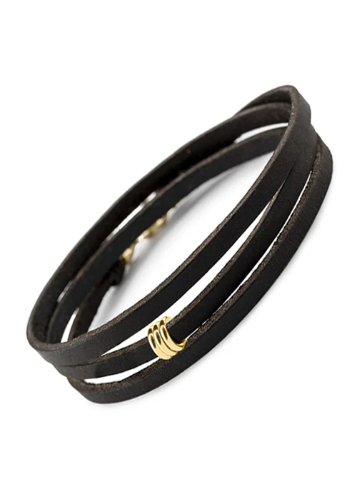 The Atlas ‘TrinityALS’ captures the power of numerology. The bracelet's timeless and sophisticated design is enhanced with deeper meaning by adding your choice of up to 11 recycled 14k yellow gold rings to the leather lace, which wraps three times over the wrist.
