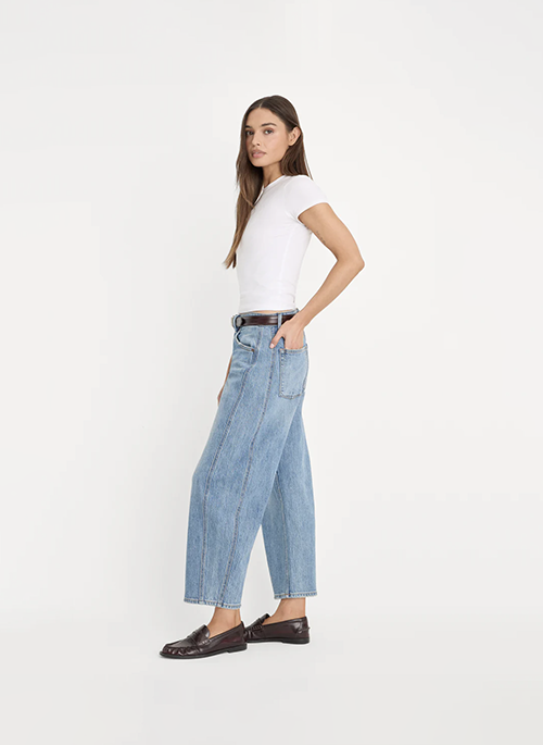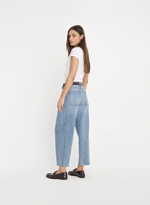 Our take on the trending barrel silhouette. A super relaxed fit with a high-rise waist and slightly curved leg shape that gently tapers at the ankle. Made from our comfort denim, they'll hold their shape while keeping things easy, whether you're staying in or stepping out.Details: