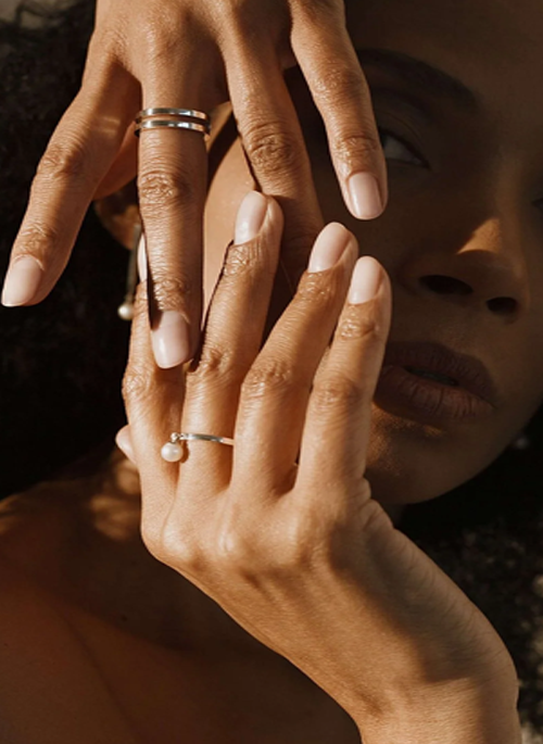 Silver Ring with Moving White Pearl